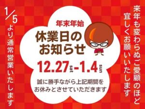 <年末年始休業のお知らせ>
